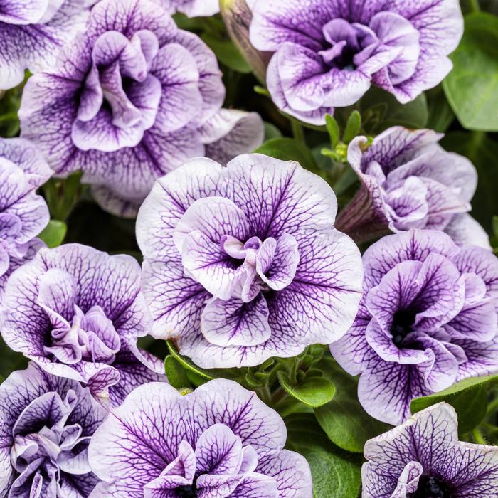 Semi-double lavender flowers with purple veins all season; fertilize often