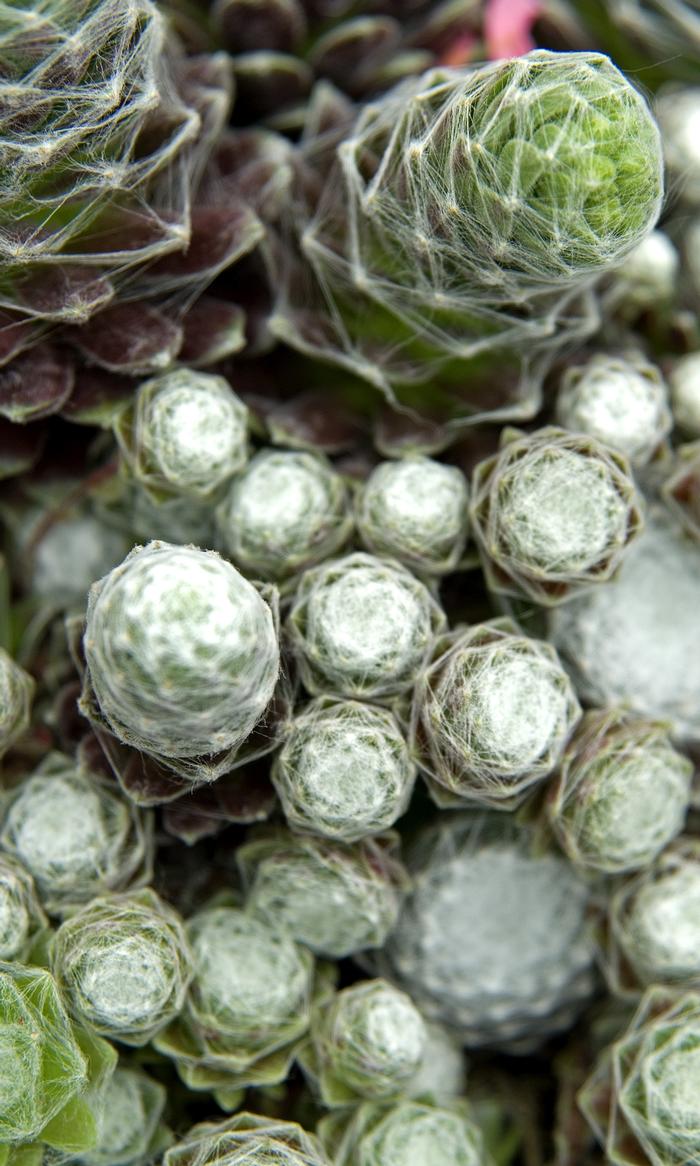 Sempervivum or Hen and Chicks is a beautiful collection of succulents that easily survive hot and dry conditions in the garden or container. One large rosette called the "hen" sprouts smaller rosettes called "chicks" resembling a rose yet to unfurl, hence the name. They are easy to grow and are fun to collect the many different varieties. Interesting fact: a mature rosette may or may not produce flowers and if it does produce a flower, the rosette will die. Neighboring chicks will quickly fill in the gap.